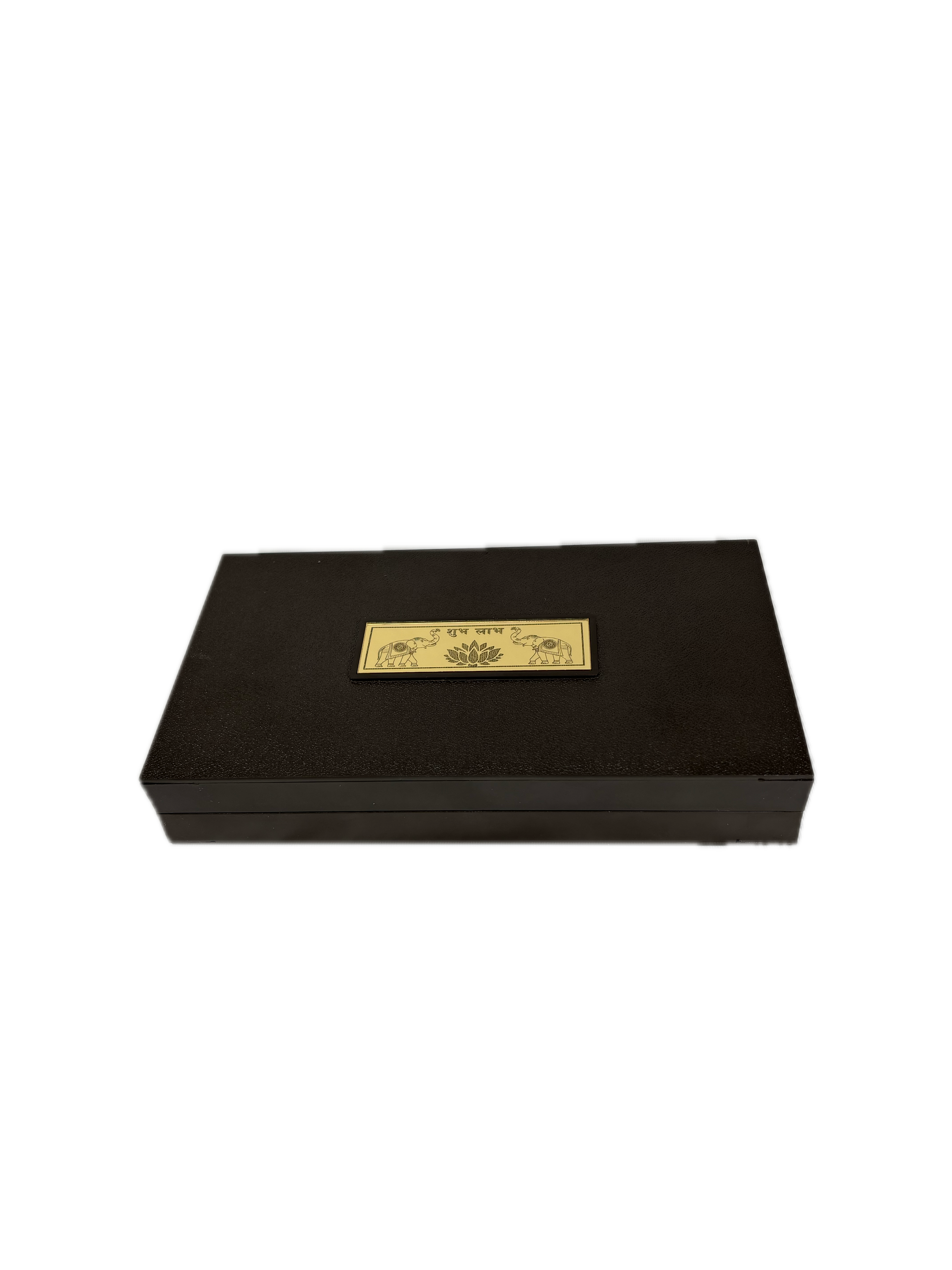 Engraved on the top half of the box and plated in 24 Karat Gold, these divine idols bring blessings of knowledge, wealth, and prosperity.